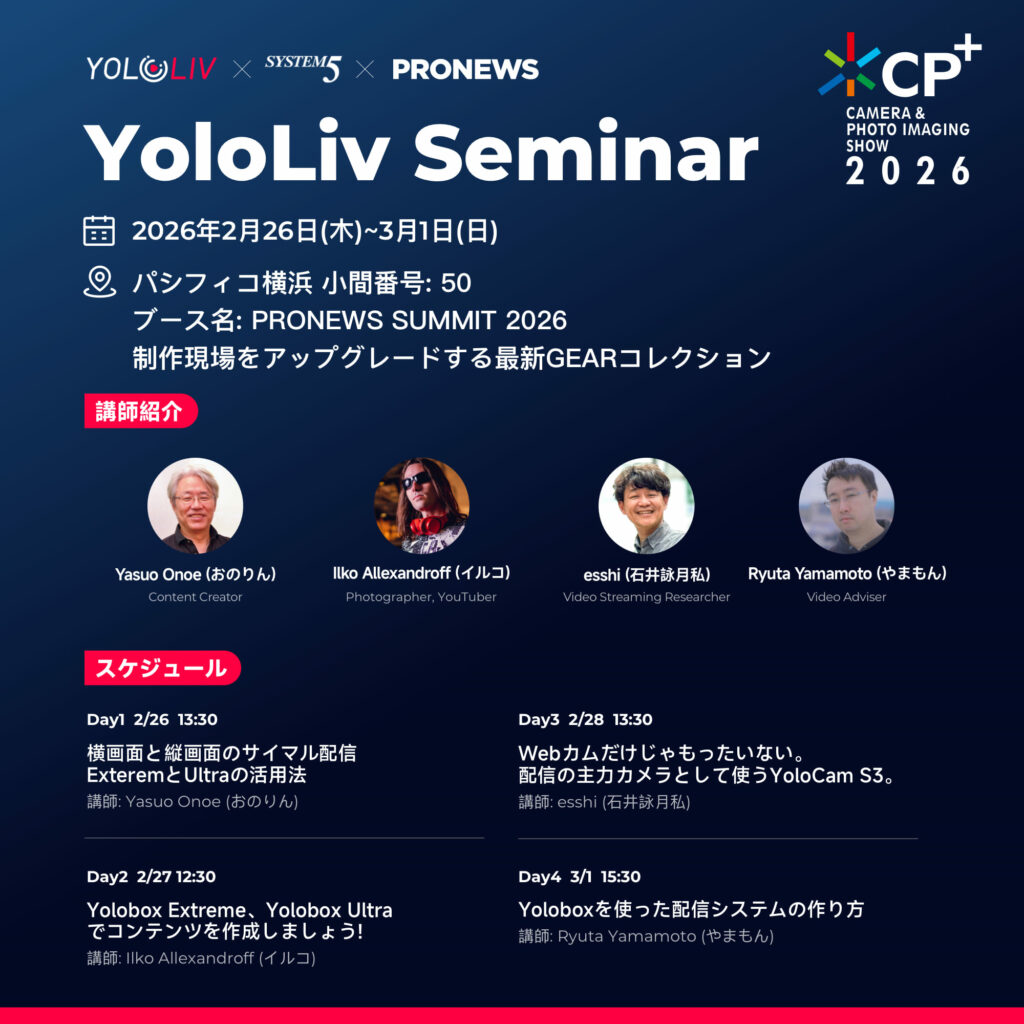 【イベント名】「CP+2026」Pronews Sumit 2026 – YoloLiv Seminar