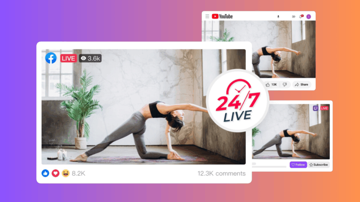 24/7 live streaming boosts your visibility on YouTube, Facebook, and Twitch algorithms. More streams mean more views, attracting new subscribers—a win-win for your audience and channels.