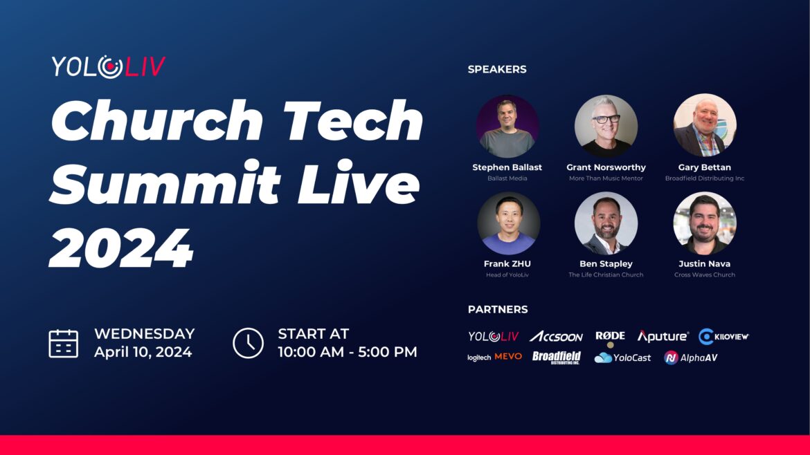 YoloLiv, a leading provider of live streaming and video production solutions, is proud to announce the 2024 Church Tech Summit Live, a virtual gathering of church leaders, tech enthusiasts, and ministry professionals from around the world. The event will take place from 10:00 AM – 5:00 PM EST on April 10th and will be hosted by YoloLiv.
