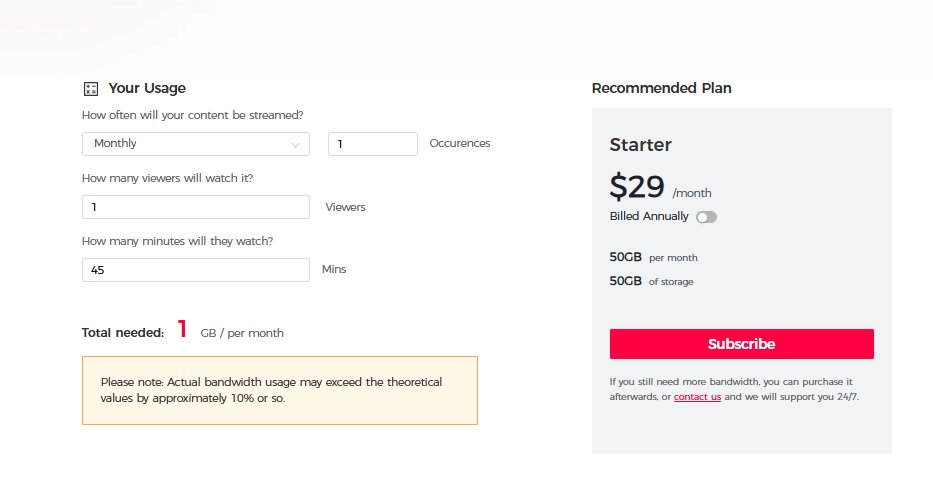 | Starter | $29 | No bandwidth included |
