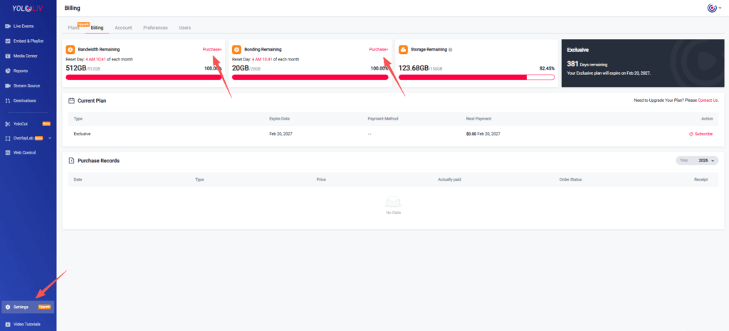 https://dashboard.yololiv.com/settings/billing