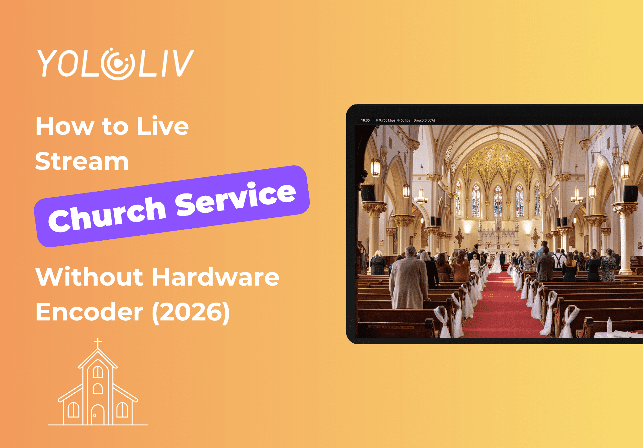TL;DR: You can live stream church service without hardware encoder devices by combining two free or low-cost tools. OBS Studio (free software) captures your camera and encodes the video on your laptop. YoloCast receives that stream and distributes it to YouTube, Facebook, and any other platform you choose. Total setup cost: one USB capture card ($30 to $150) and a YoloCast plan starting at $19/month with a 14-day free trial.