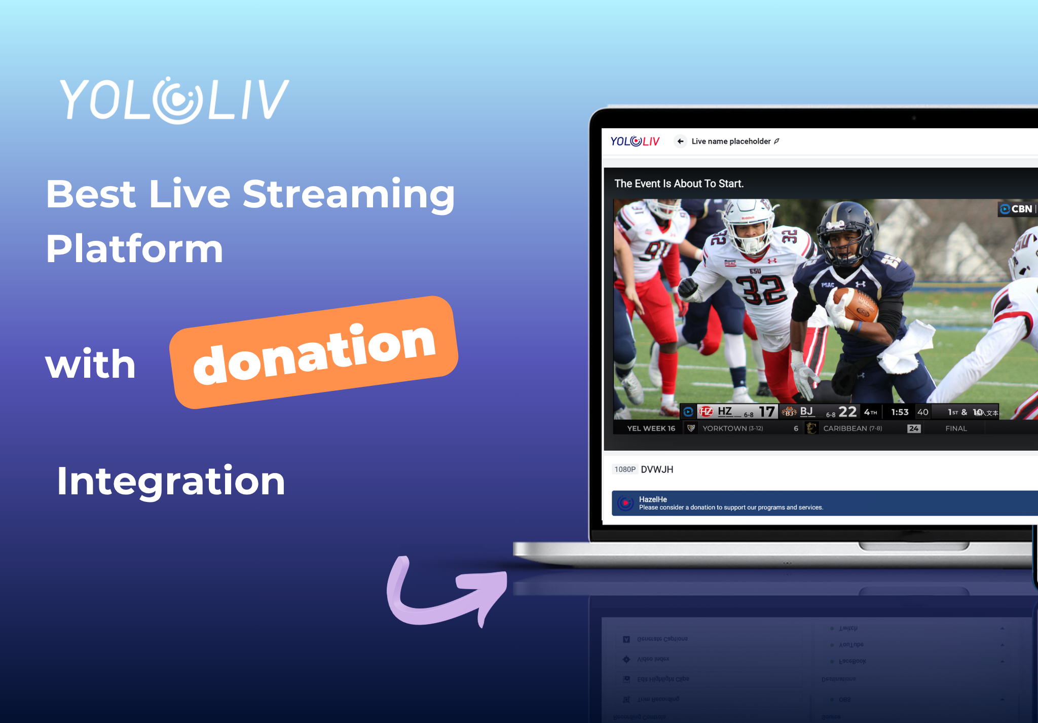 It takes three steps. Pick a plan that includes Donations (Exclusive at $39/month or higher). Generate a donation link from your payment platform of choice. Paste the link and a short message into your YoloCast event settings. When you go live, the Donate banner appears automatically on the watch page.