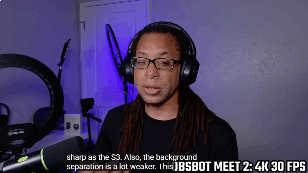“Now, the bokeh. I love the bokeh. It’s natural. It’s from the lens itself. It’s not a software effect. You don’t have to have a video broadcast or anything like that. You’re not going to have any artifacting when you’re moving around.” “Blurs out this text a little bit. Everything back there is even more.”
