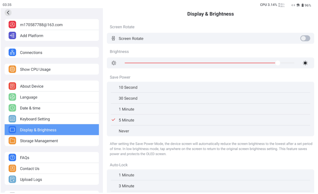 For power management, a new Save Power mode has been added, which automatically dims the screen to the lowest brightness at set intervals, without completely turning it off, providing a more comfortable experience for long sessions.