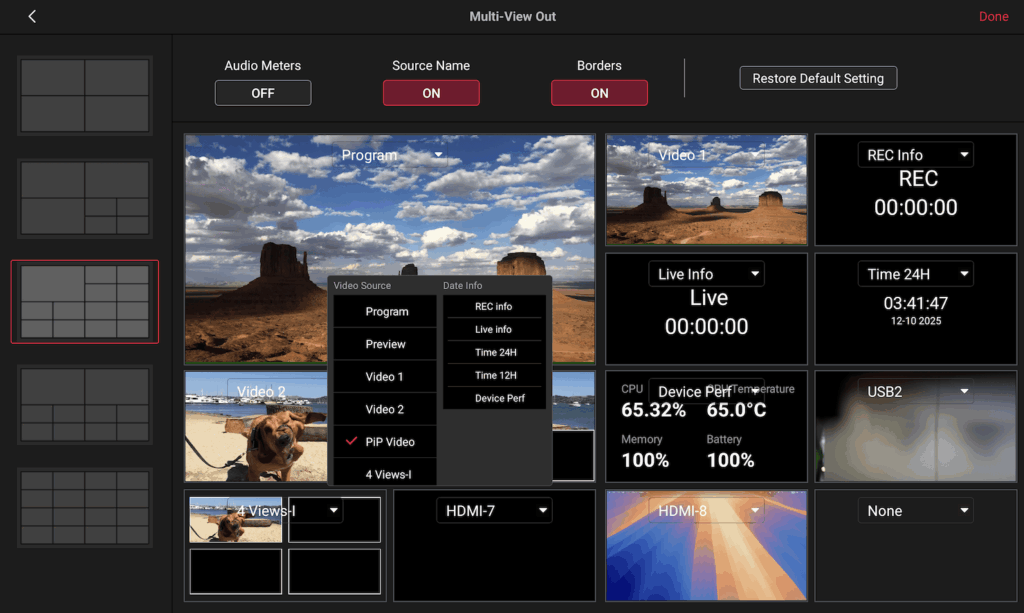 Meanwhile, the new version of MultiView output adds a Device Performance display, allowing for more comprehensive real-time monitoring of the overall live streaming status.