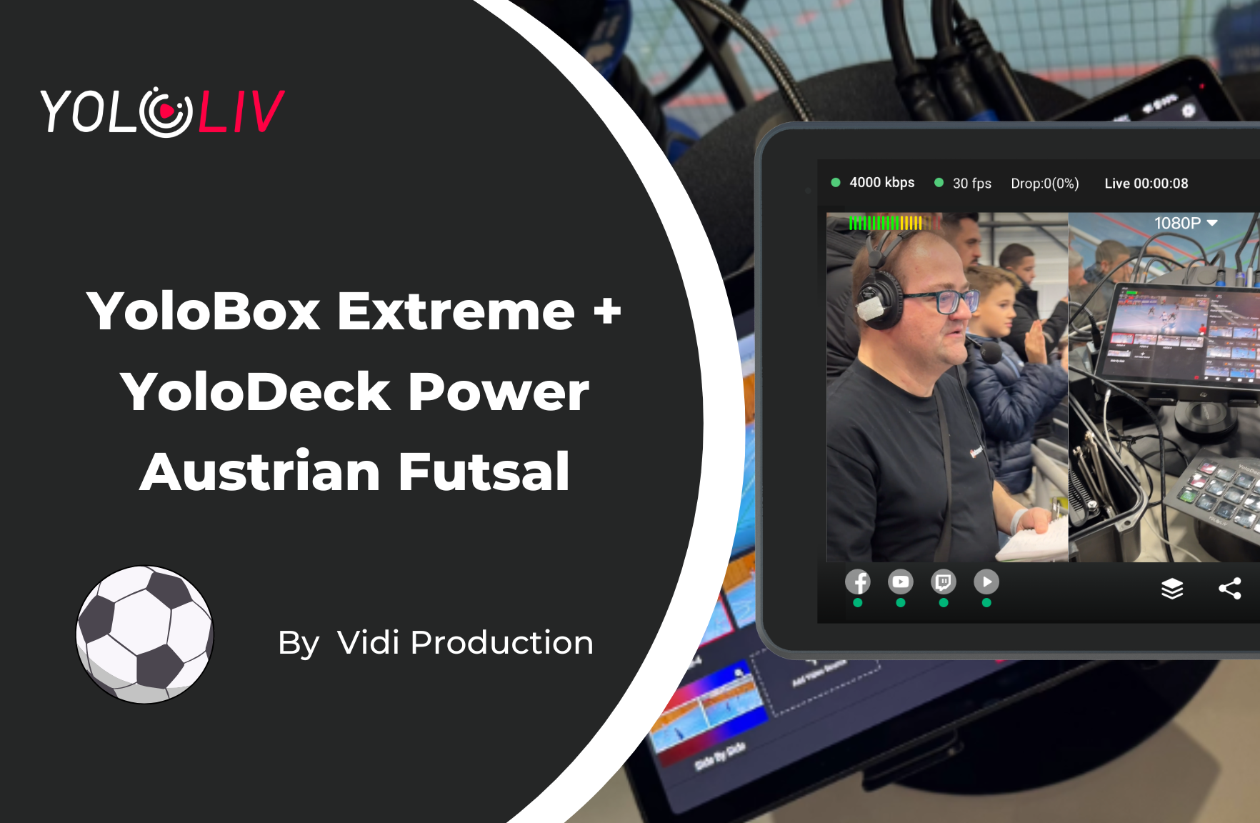Thanks to YoloLiv, Vidi Production successfully brought TV-quality live futsal broadcasts to fans across Austria with just two operators. Viktor sums it up perfectly: “YoloBox Extreme and YOLODeck gave us the power of a full broadcast team in a fraction of the space and budget.”