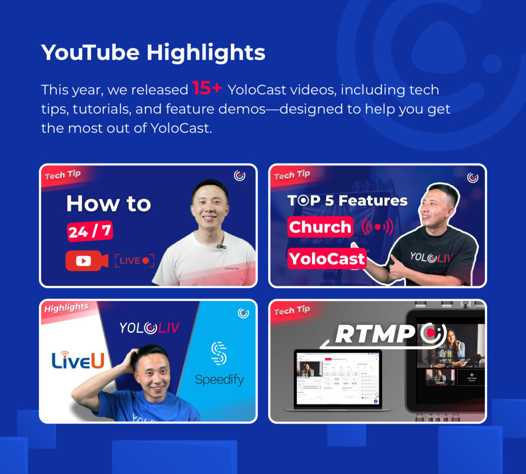 We also expanded our video library with 15+ new YouTube videos, including tutorials, feature walkthroughs, and technical guides—designed to help users get the most out of YoloCast.