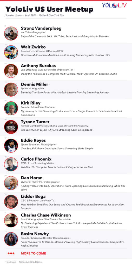 Want to share your YoloBox journey? Step up as a speaker. We’ll live stream your session to our official YouTube and Facebook channels — and turn it into a dedicated short film published on the YoloLiv website. This isn’t just a speaking slot. It’s your story, professionally documented and shared with the entire YoloLiv community.